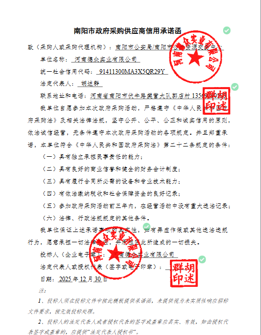 三、评审专家名单 李蔚、宋云丽、李峰(采购人代表) 四、代理服务收费标准及金额 收费标准:无 收费金额:0.00元 五、成交公告发布的媒介及成交公告期限 本次中标公告在《河南省政府采购网》《南阳市公共资源交易中心》上发布,成交公告期限为1个工作日 。 六、其他补充事宜 无 七、凡对本次公告内容提出询问,请按以下方式联系 1. 采购人信息 ******公安局 地址:张衡路一号 联系人:李峰 联系方式:****** 2.采购代理机构信息(如有) 名称:南阳市公共资源交易中心 ******服务中心中区3号楼5楼 联系人:蔡有良 联系方式:****** 3.项目联系方式 项目联系人:蔡有良 联系方式:******